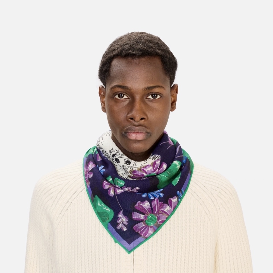 Echarpe Carré Laine Toutou Bleu Marine • Inouï Editions •