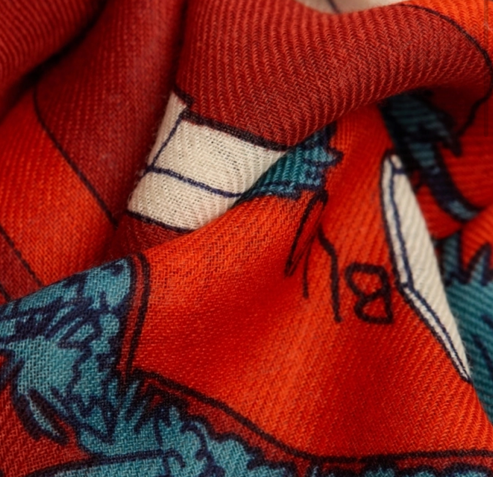 Echarpe en étamine de laine imprimée à la main en Inde.