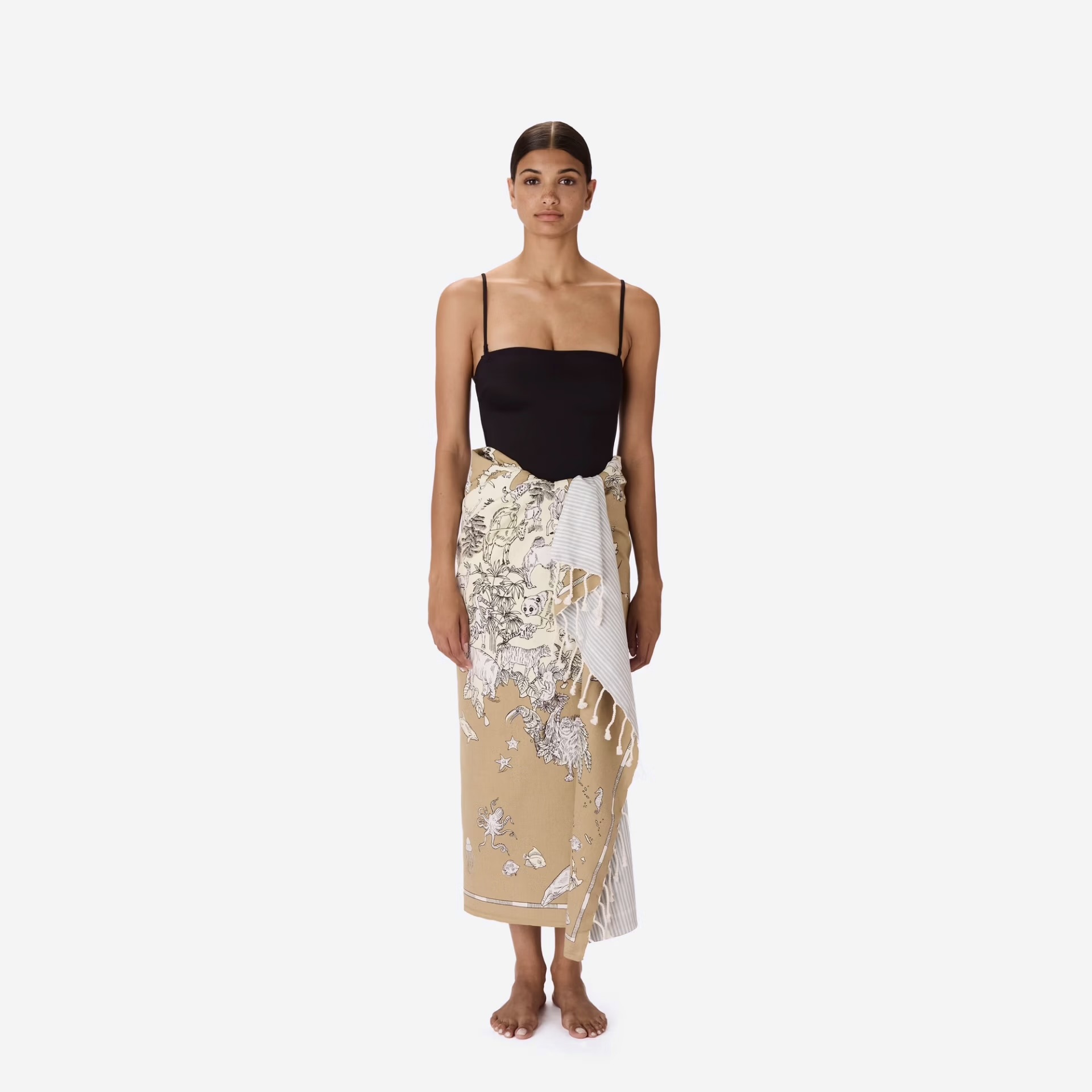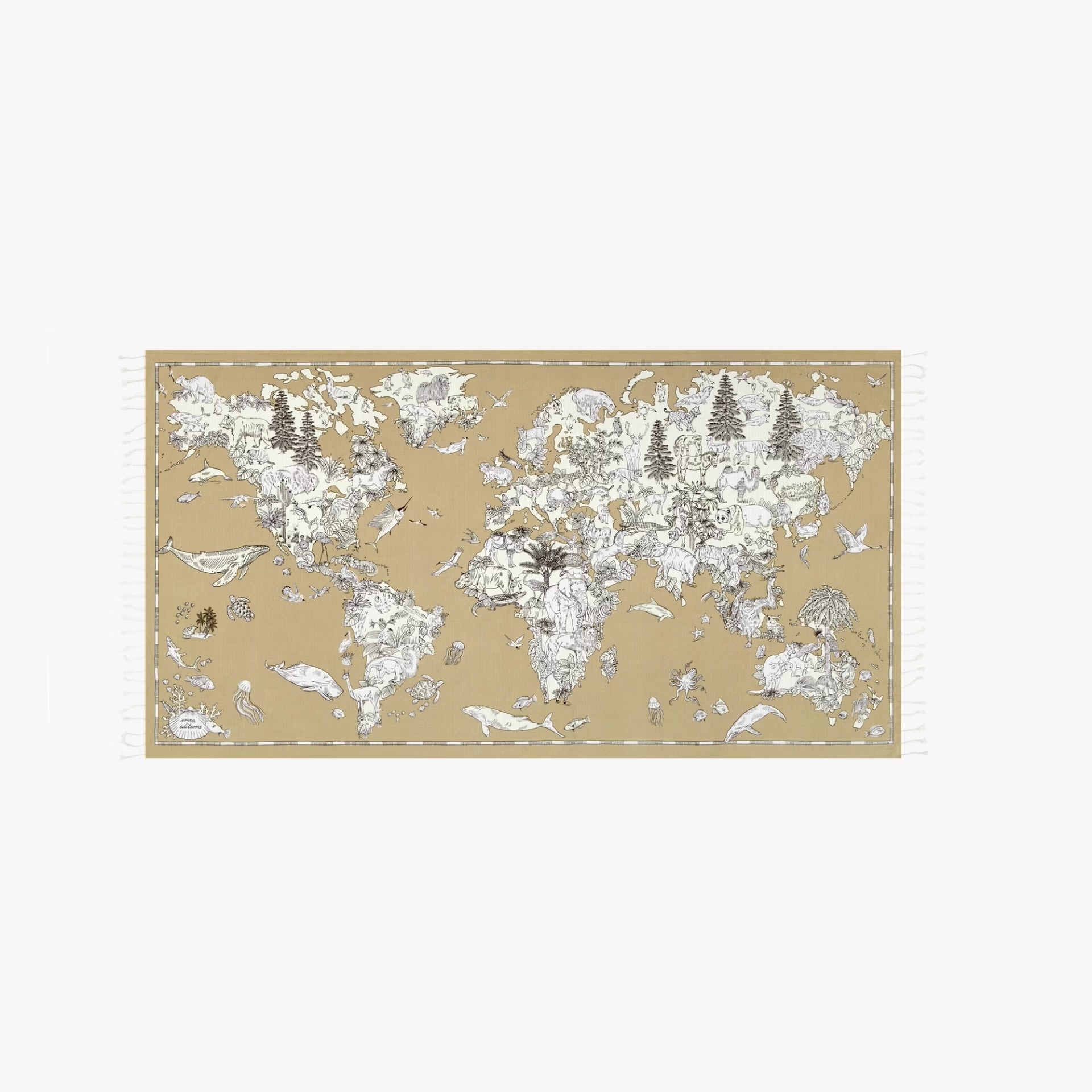 Motif Mappemonde animaux fond beige, rayures bleues sur l’envers