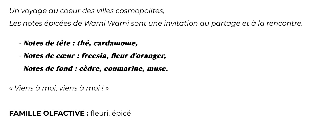 Famille olfactive : fleuri, épicé